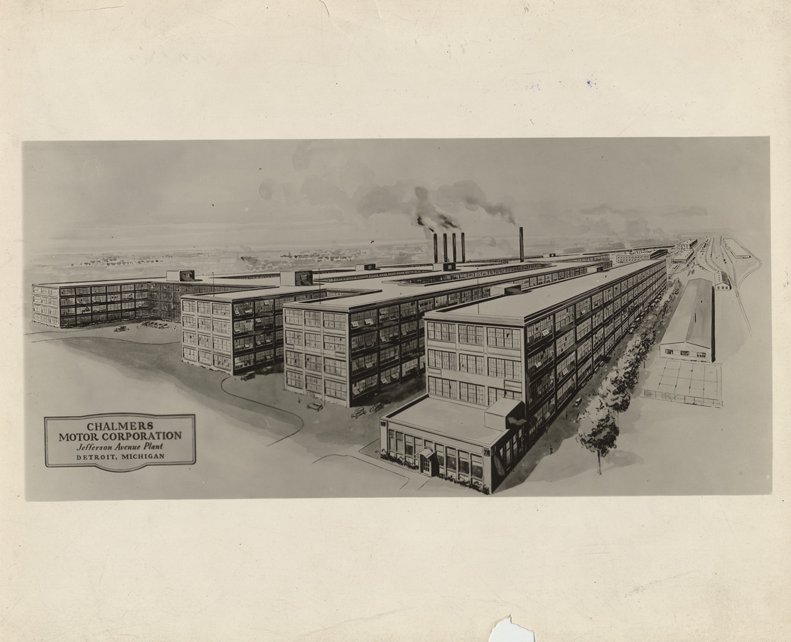 Favorite this☆ Chalmers Motor Company Jefferson Avenue factory Description: View of an illustration of the Chalmers Motor Company Jefferson Avenue factory. Details Resource ID: EB01a072 Subject: Automobile factories--Michigan--Detroit Chalmers Motor Company Photographic prints Date Issued: 1913 Format: 1 photographic print ; 8 x 10 in. Member of: National Automotive History Collection Rights: Physical rights are retained by DPL. Copyright is retained in accordance with U.S. copyright laws.