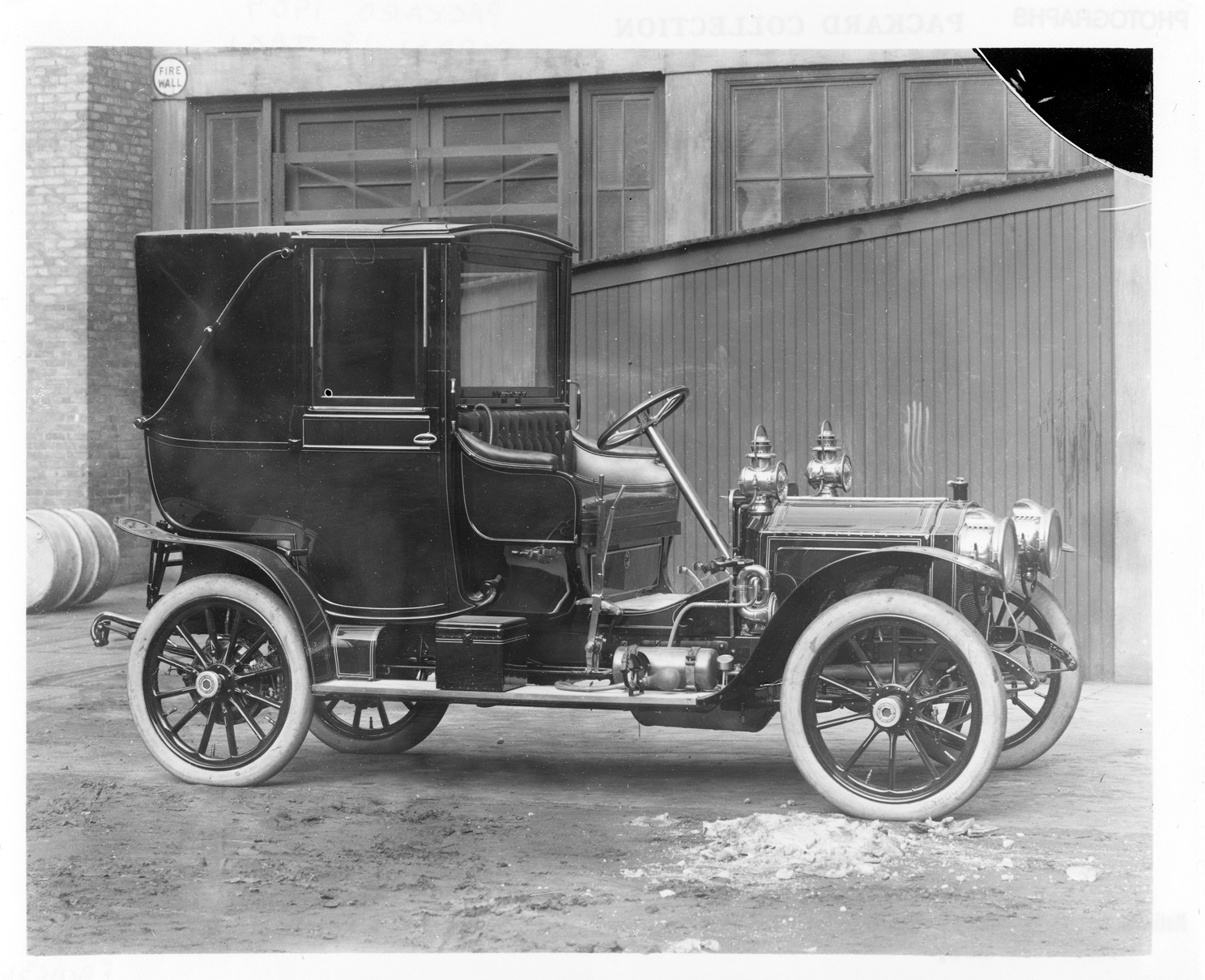 Favorite this☆ 1909 Packard 18 Model NA taxi, three-quarter front view, right side Description: Packard Co. file photograph of a 1909 Packard 18 Model NA taxi, three-quarter front view, right side, brick building in background. Details Resource ID: EB01c312 Creator: Packard Motor Car Company Subject: Packard automobile Photographic prints Date Issued: 1909 Format: 1 photographic print ; 8 x 10 in. Member of: National Automotive History Collection Packard Collection Rights: Physical rights are retained by DPL. Copyright is retained in accordance with U.S. copyright laws.