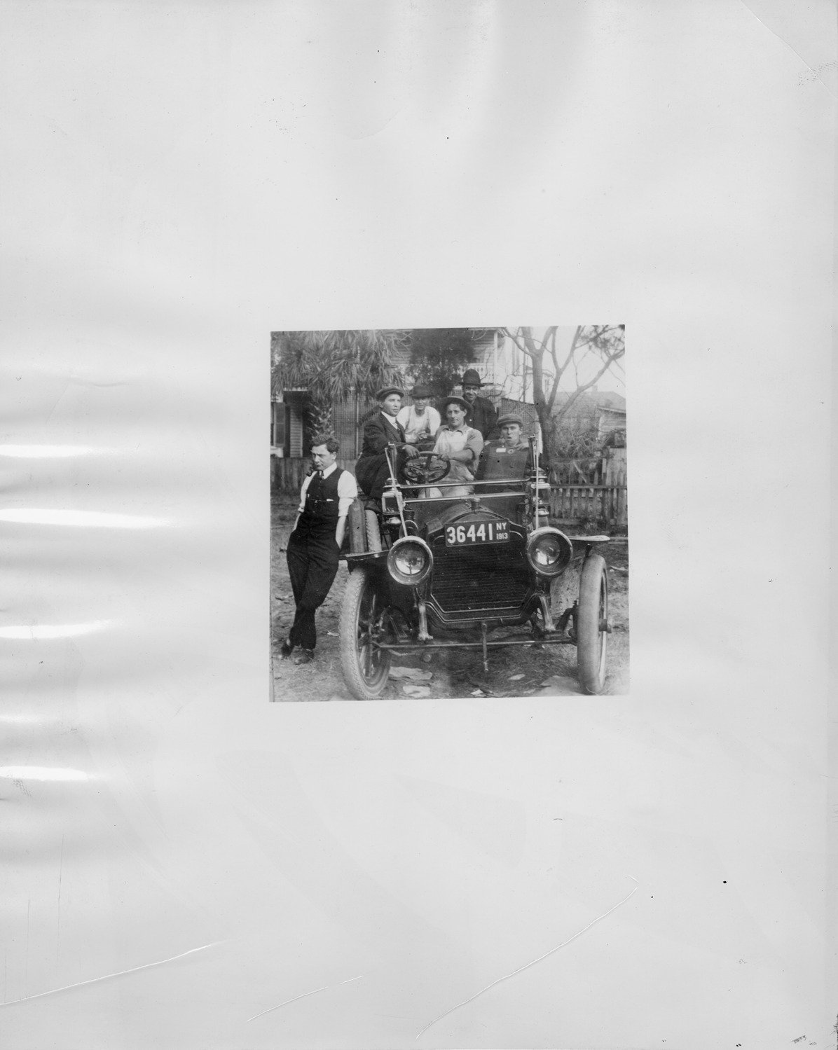 Packard Co. file photograph of a 1911 Packard 30 Model UD close up of windshield. Inscribed on photo back: "4-cylinder, 30-horsepower, 123.5-inch wheelbase, touring car, fitted with Packard windshield, shown in closed position."