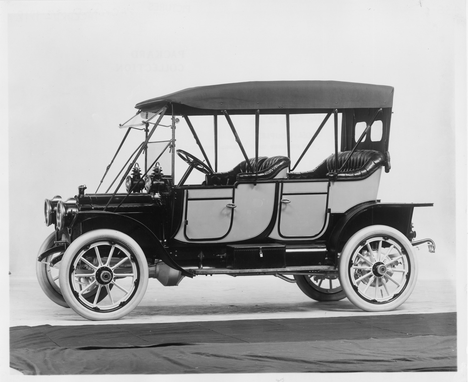 Favorite this☆ 1912 Packard 18 Model NE close-coupled, left side Description: Print copied from a glass negative of a 1912 Packard 18 Model NE left side, top raised. Inscribed on photo back: "4-cylinder, 26-horsepower, 112-inch wheelbase, close-coupled, fitted with Packard storm-tilt windshield, & standard top." Details Resource ID: EB01c428 Creator: Packard Motor Car Company Subject: Packard automobile Photographic prints Date Issued: 1912 Format: 1 photographic print ; 8 x 10 in. Member of: National Automotive History Collection Packard Collection Rights: Physical rights are retained by DPL. Copyright is retained in accordance with U.S. copyright laws.