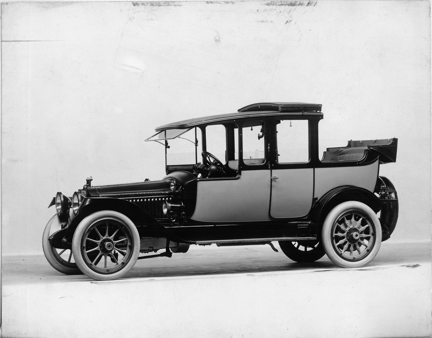 1914 Packard 2-38 cab-side landaulet, five-sixths front view, left side, quarter collapsed