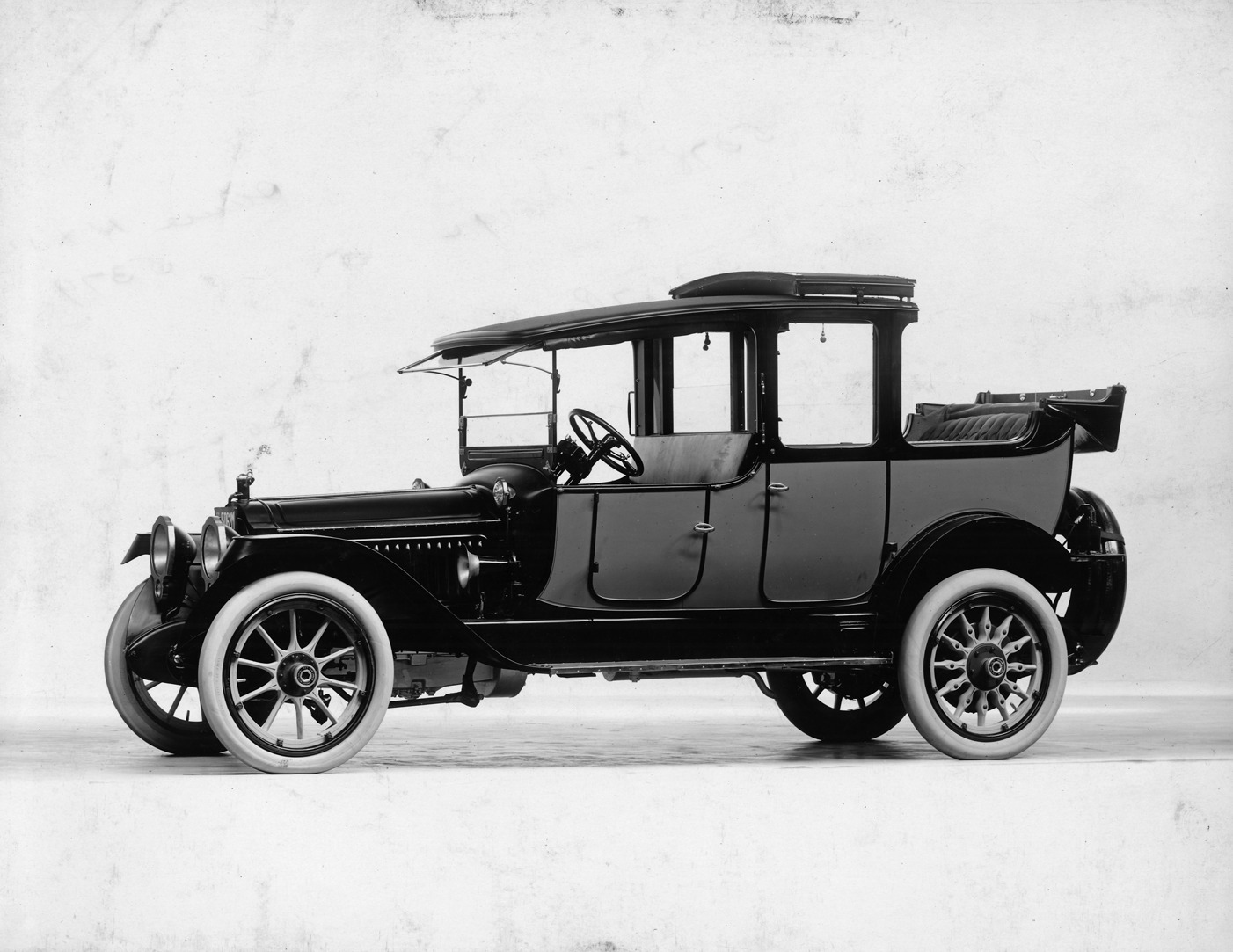 Favorite this☆ 1915 Packard 3-38 two-toned landaulet, five-sixth front view, left side, quarter collapsed Description: Packard Co. file photograph of a 1915 two-toned Packard 3-38. Inscribed on photo back: "6-cylinder, 38-horsepower, 140-inch wheelbase, 6-person landaulet, quarter collapsed, five-sixth front view, left side." Details Resource ID: EB01c685 Creator: Packard Motor Car Company Subject: Packard automobile Photographic prints Date Issued: 1915 Format: 1 photographic print ; 7.5 x 9.5 in. Member of: National Automotive History Collection Packard Collection Rights: Physical rights are retained by DPL. Copyright is retained in accordance with U.S. copyright laws.