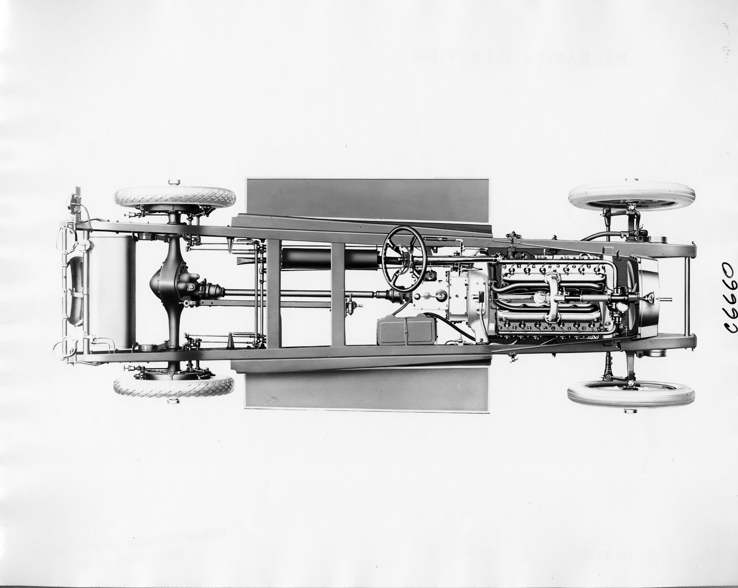 Packard Co. file photograph of a 1917 Packard Model 2-25 bare chassis, plan elevation.