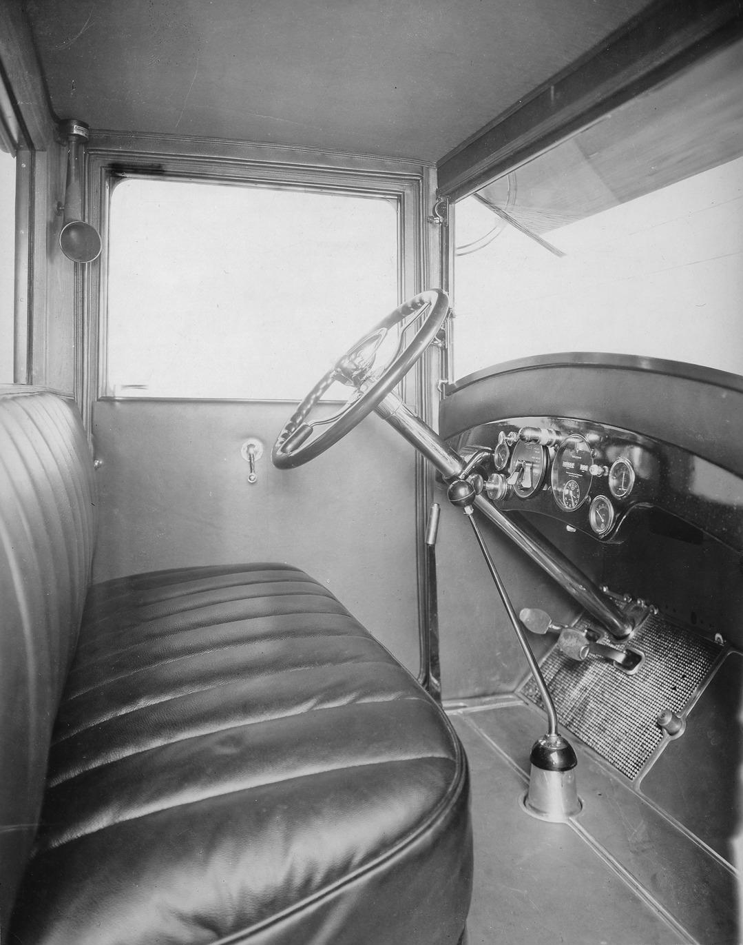 1920-1923 Packard duplex sedan showing steering wheel and instrument panel