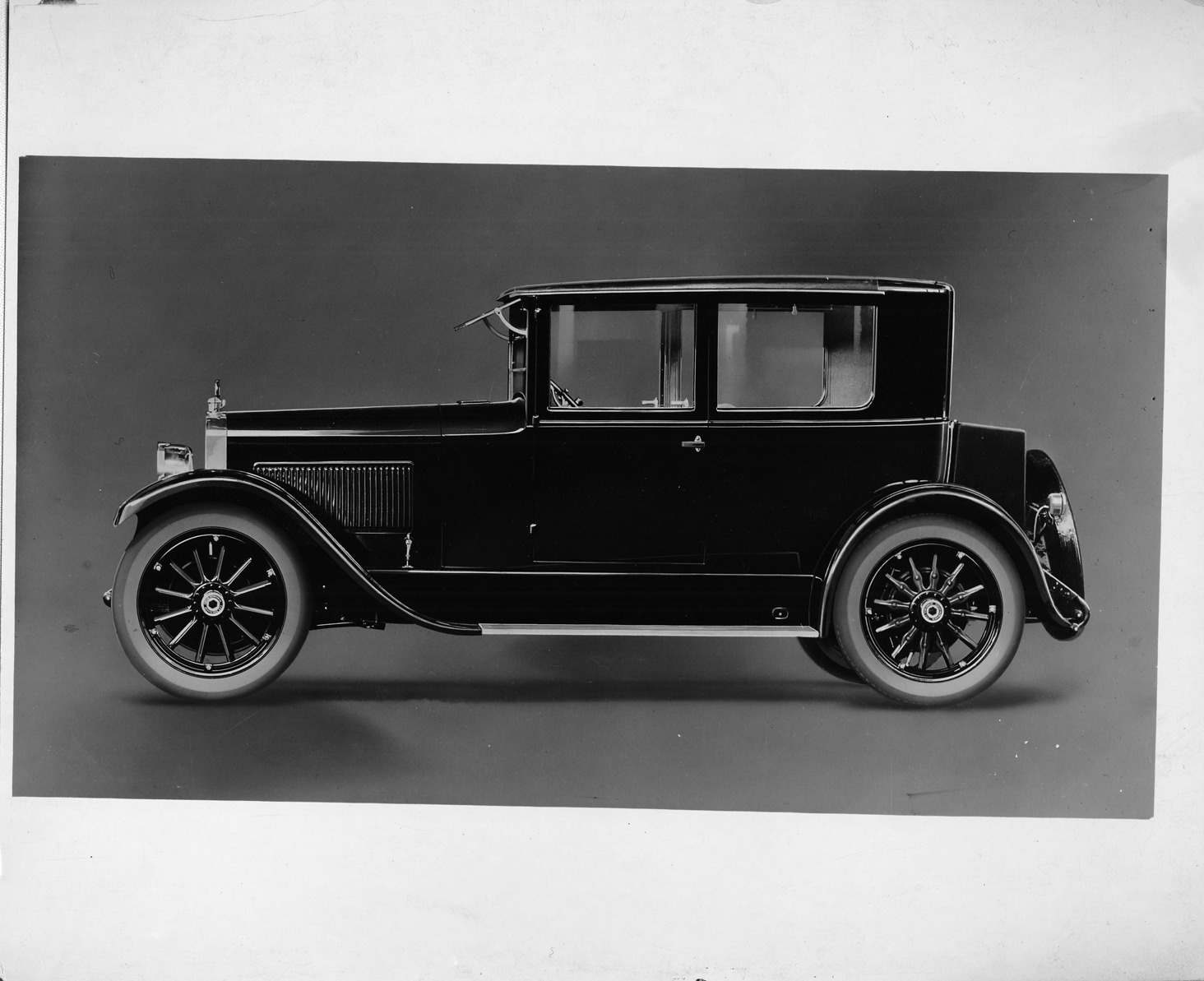 Packard Co. file photograph of a 1924 Packard. Inscribed on photo back: "226, second series six (produced 12/27/1923-2/2/1925), 6-cylinder, 54-horsepower, 126-inch wheelbase, 5-person coupe (body type #230), left elevation."