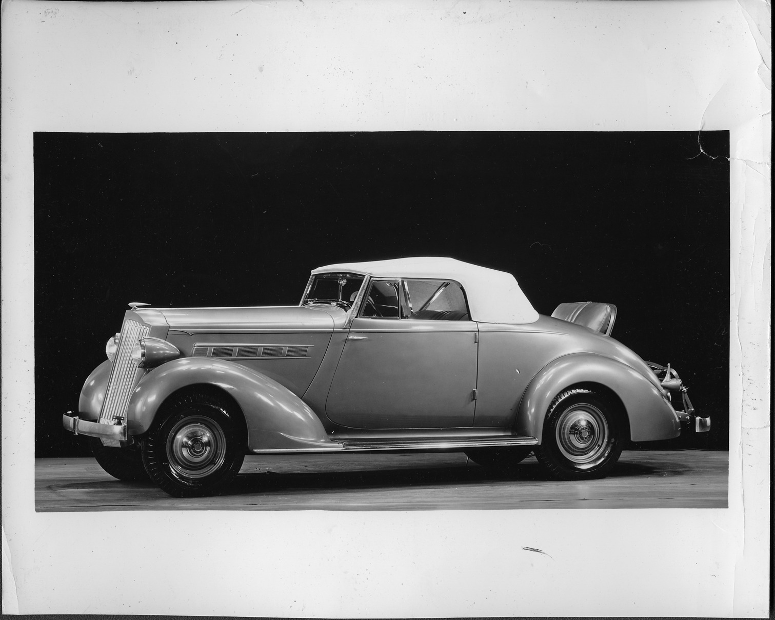1935 Packard convertible coupe, top raised, rumble seat open
