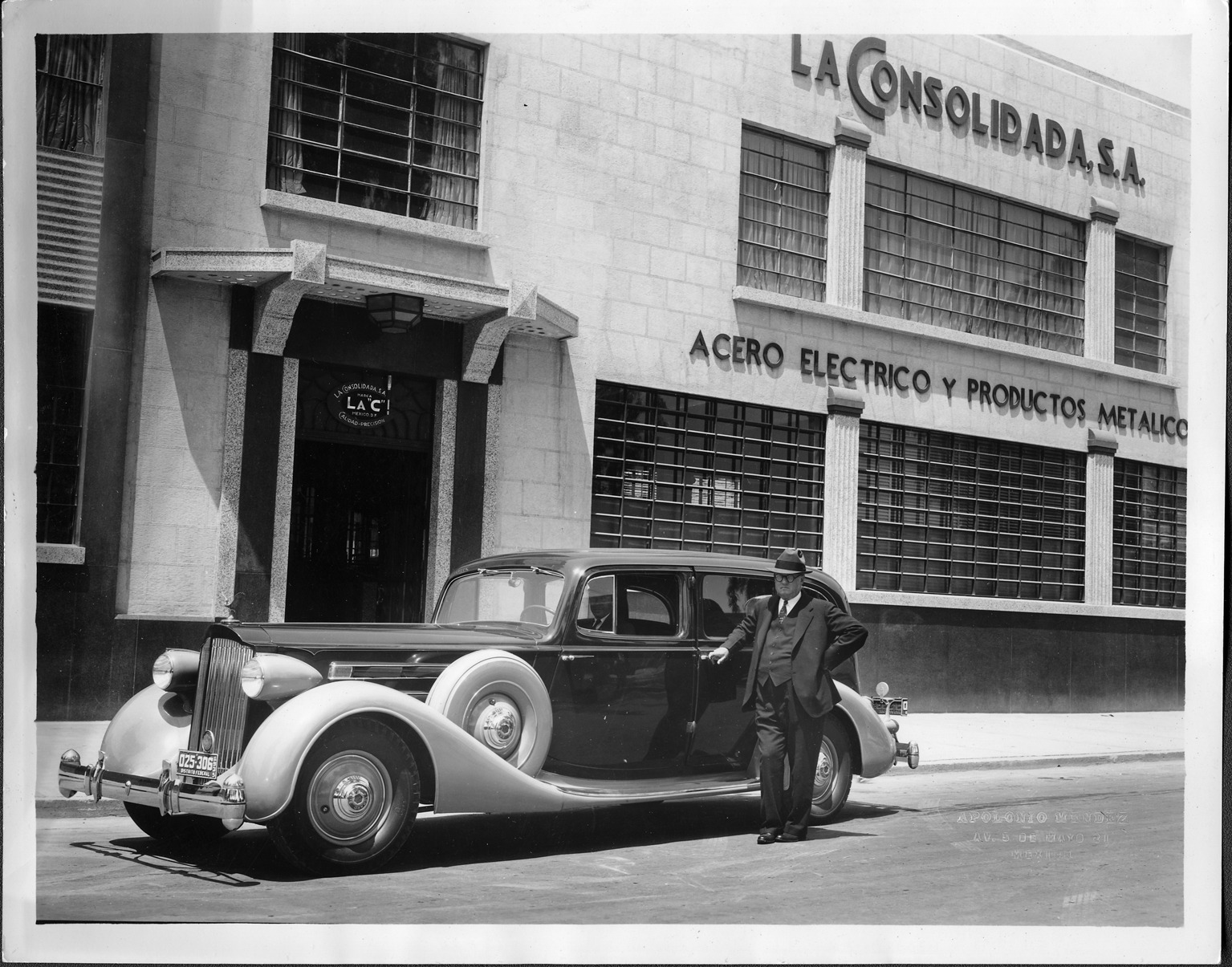1935 Packard limousine parked in front of La Consolidada, S.A.