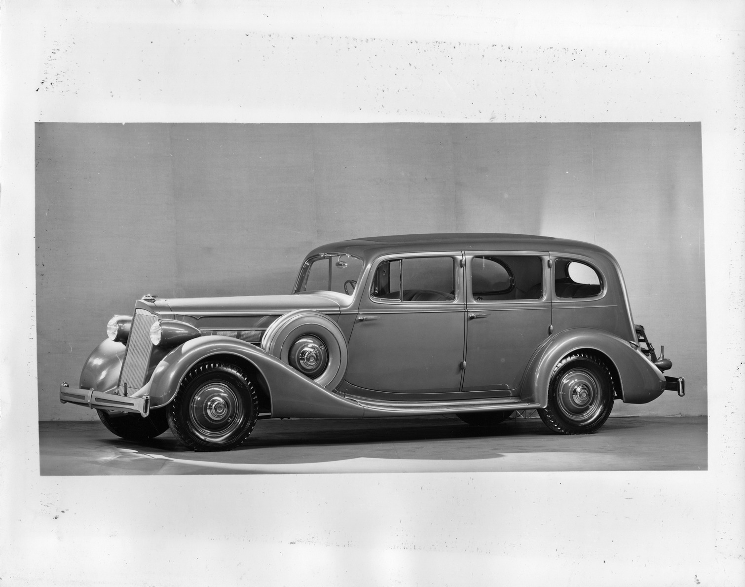 Favorite this☆ 1936 Packard sedan, nine-tenths left side view Description: Packard Co. file photograph of a 1936 Packard eight, 7-person sedan, nine-tenths left side view, side mounted spare tire with fitted metal cover. Details Resource ID: EB01d862 Creator: Packard Motor Car Company Subject: Packard automobile Photographic prints Date Issued: 1936 Format: 1 photographic print ; 8 x 10 in. Member of: National Automotive History Collection Packard Collection Rights: Physical rights are retained by DPL. Copyright is retained in accordance with U.S. copyright laws.