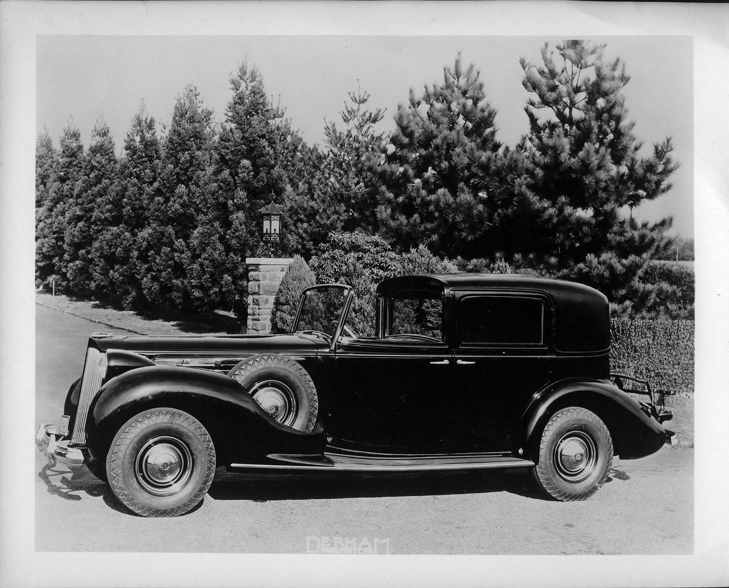 Favorite this☆ 1938 Packard town car, left side view, parked on drive Description: Packard Co. file photograph of a 1938 Packard left side view, parked on drive. Inscribed on photo back: "Packard 12, model 1608, Durham town car." Details Resource ID: EB01e054 Creator: Packard Motor Car Company Moffitt, George A. Subject: Packard automobile Photographers--New York (State)--New York Photographic prints Date Issued: 1938 Format: 1 photographic print ; 8 x 10 in. Member of: National Automotive History Collection Packard Collection Rights: Physical rights are retained by DPL. Copyright is retained in accordance with U.S. copyright laws.
