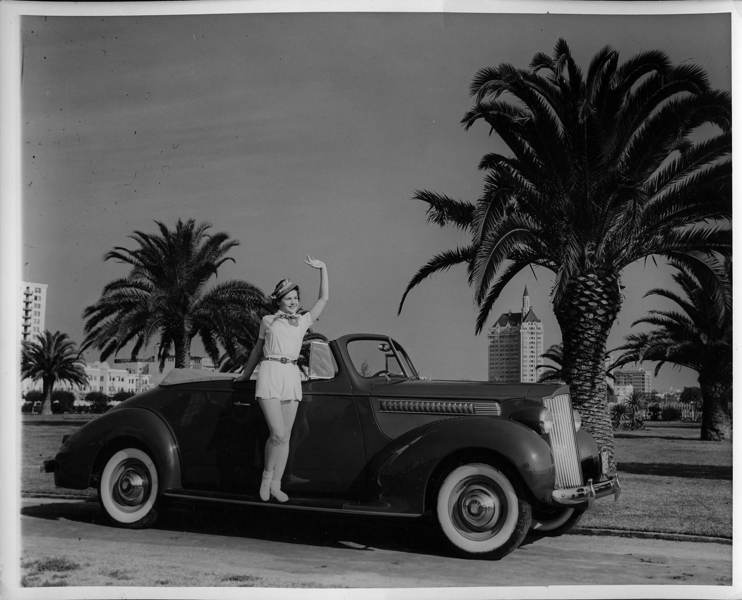 Favorite this☆ Woman posing with 1939 Packard convertible coupe Description: Packard Co. file photograph of a woman posing with a 1939 Packard convertible coupe. Details Resource ID: EB01e108 Creator: Packard Motor Car Company Subject: Packard automobile Photographic prints Date Issued: 1939 Format: 1 photographic print ; 8 x 10 in. Member of: National Automotive History Collection Packard Collection Rights: Physical rights are retained by DPL. Copyright is retained in accordance with U.S. copyright laws.