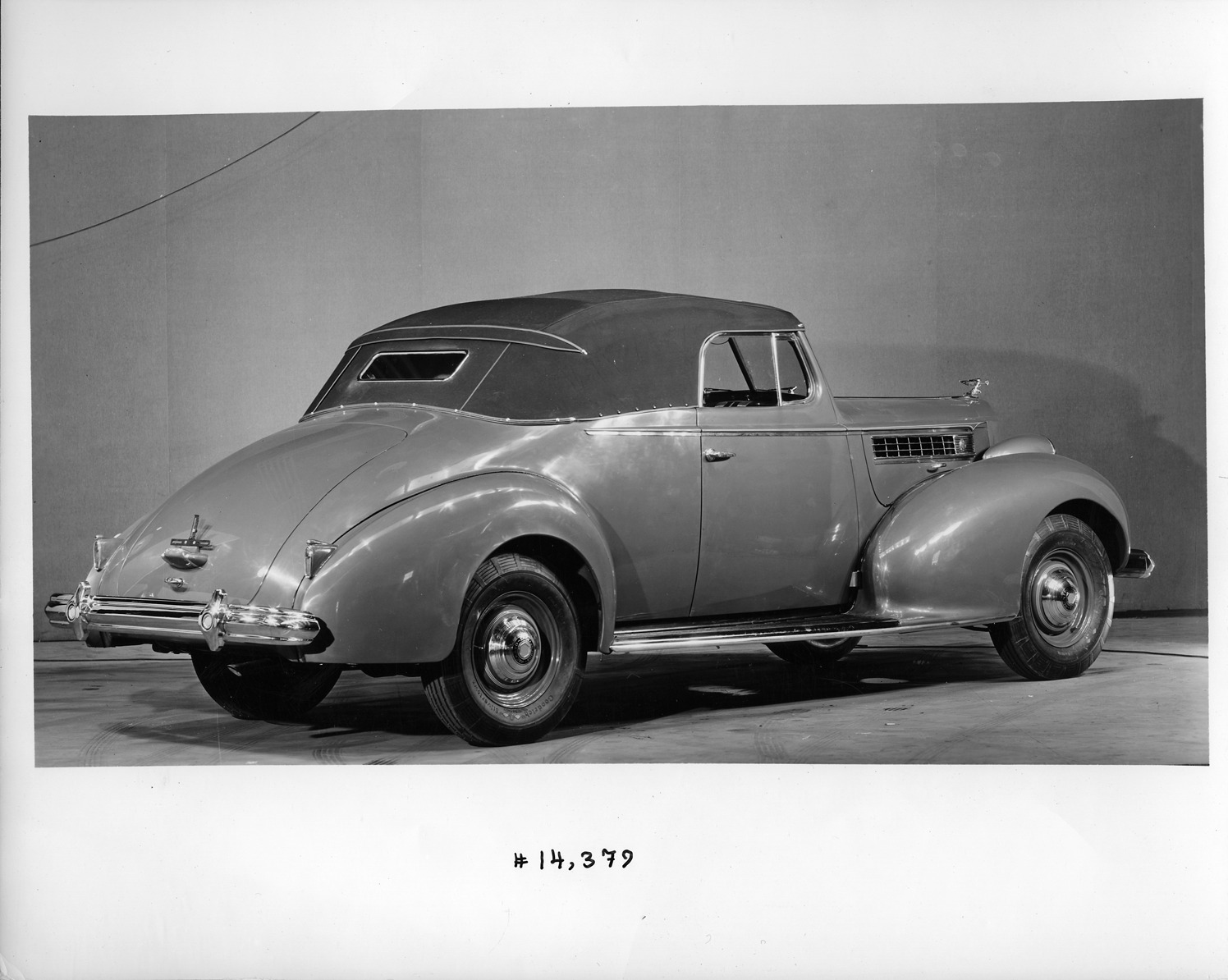 Favorite this☆ 1939 Packard convertible coupe, three-quarter rear view, top raised Description: Packard Co. file photograph of a 1939 Packard three-quarter rear view, top raised. Inscribed on photo back: "Packard super eight, seventeenth series, model 1703, 8-cylinder, 130-horsepower, 127-inch wheelbase, 2/4-person convertible coupe (body type #1279), prototype, note non-production sixteenth series Packard deluxe emblem, non-production running board tread, non-production tail lamp & reflector a la sixteenth series "Junior" models, non-production positioning of rear license plate bracket & light housing." Details Resource ID: EB01e143 Creator: Packard Motor Car Company Subject: Packard automobile Photographic prints Date Issued: 1939 Format: 1 photographic print ; 8 x 10 in. Member of: National Automotive History Collection Packard Collection Rights: Physical rights are retained by DPL. Copyright is retained in accordance with U.S. copyright laws.