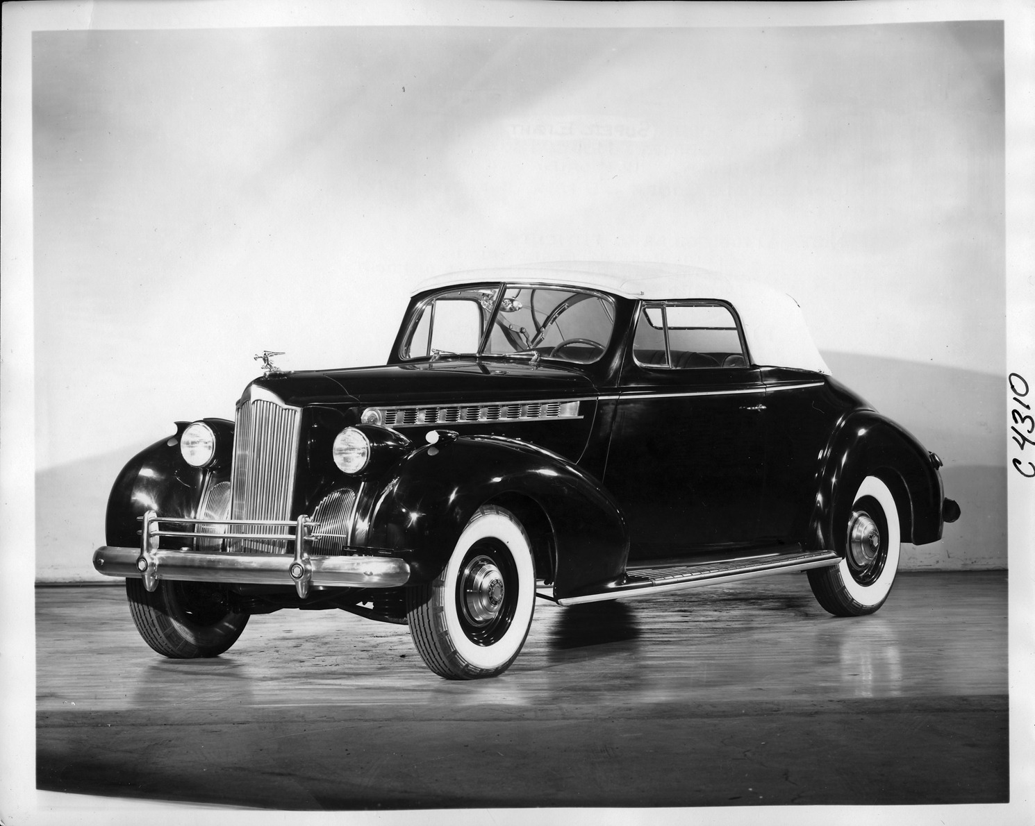 1940 Packard convertible coupe, three-quarter front view, top raised