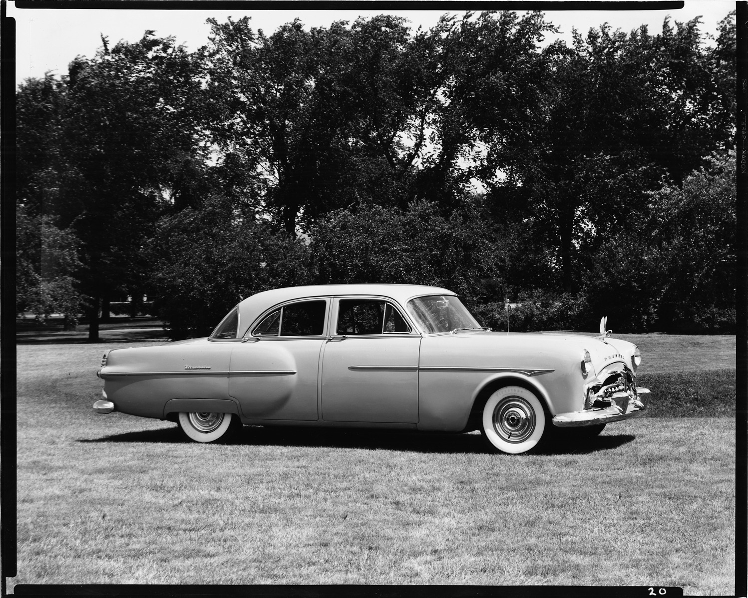 1951 Packard sedan, nine-tenths right side view, parked on grass