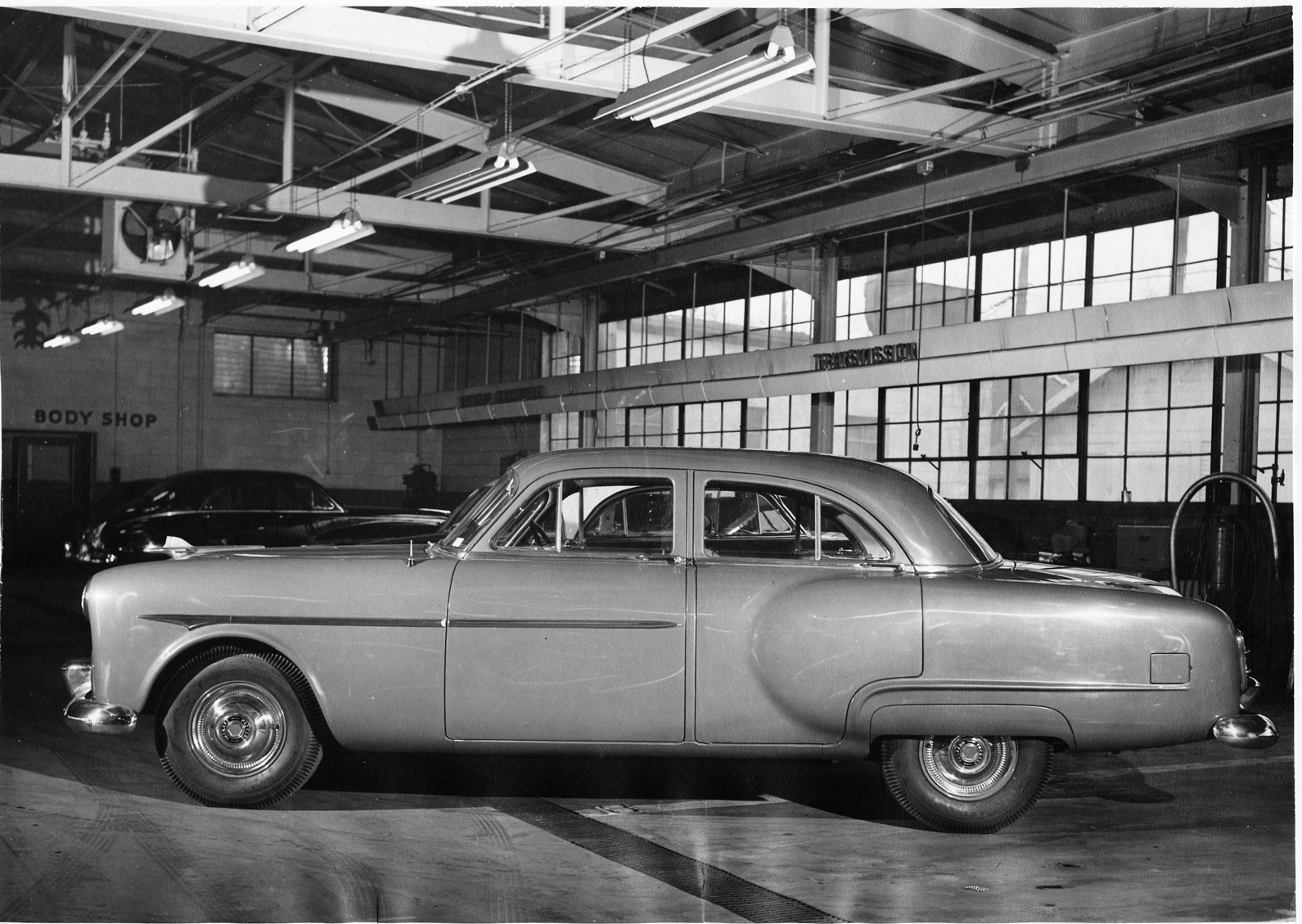 Favorite this☆ 1951 Packard sedan, left side view, parked inside a garage Description: Packard Co. file photograph of a 1951 Packard sedan, left side view, 4-door, parked inside a garage, far rear wall reads "Body Shop." Inscribed on photo back: "1951 Packard." Details Resource ID: EB01e408 Creator: Packard Motor Car Company Subject: Packard automobile Photographic prints Date Issued: 1951 Format: 1 photographic print ; 7.5 x 10.5 in. Member of: National Automotive History Collection Packard Collection Rights: Physical rights are retained by DPL. Copyright is retained in accordance with U.S. copyright laws.