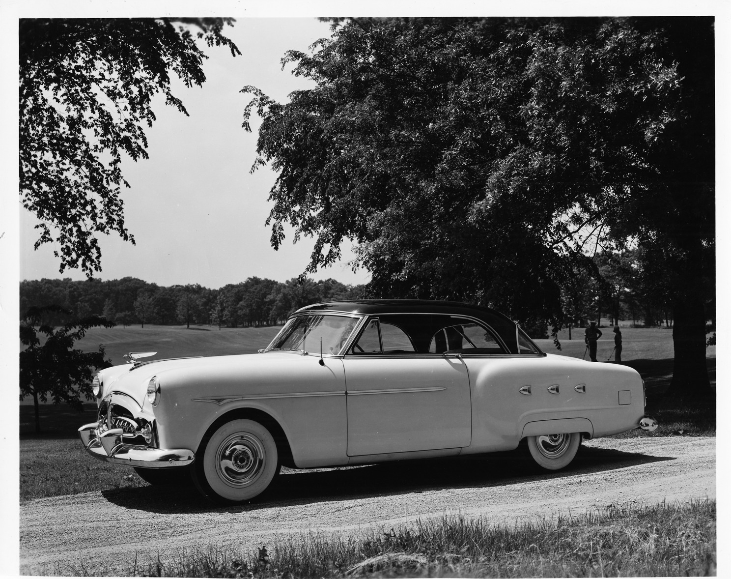 1952 Packard Mayfair sports coupe, nine-tenths left side view, parked on country road
