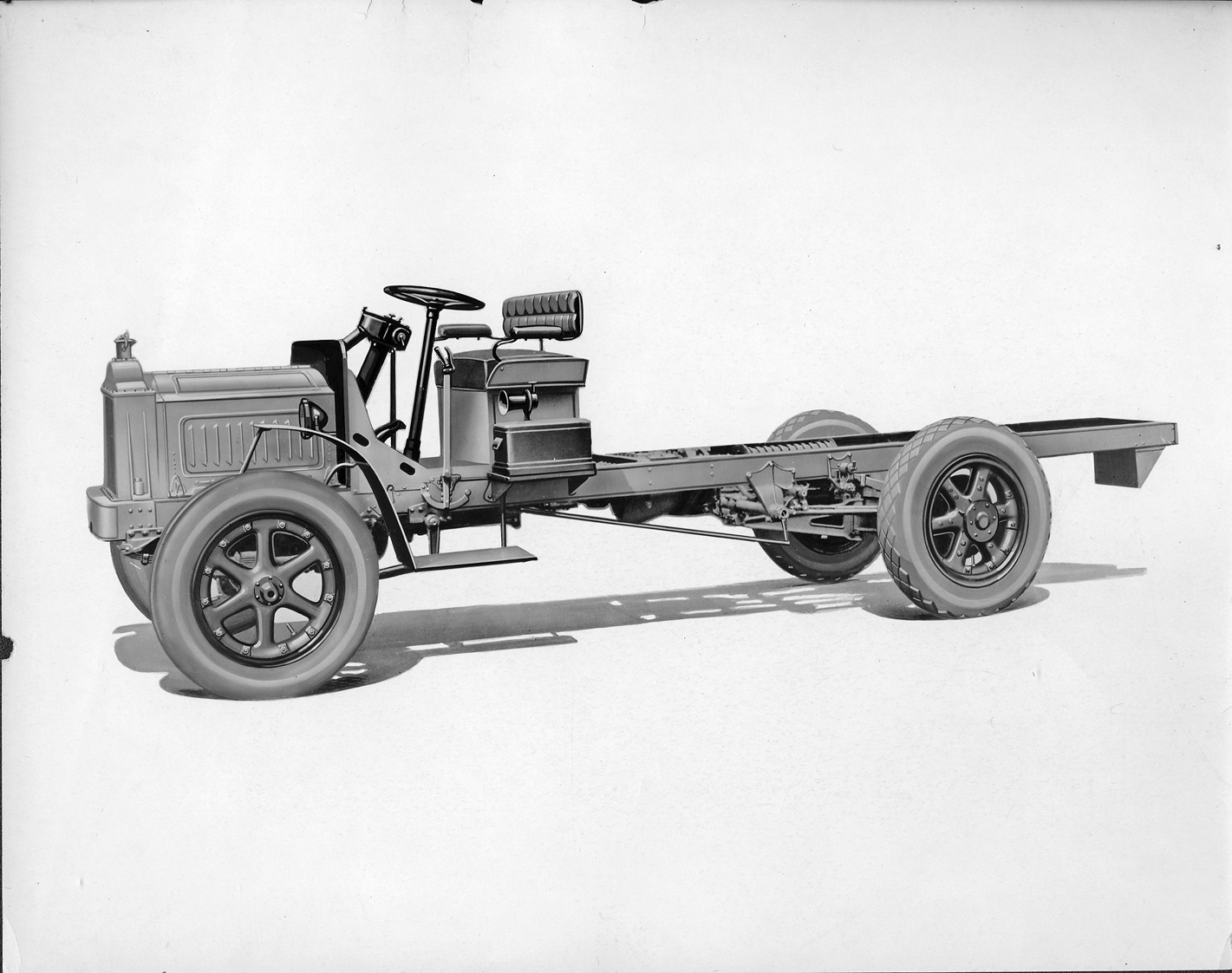 Favorite this☆ 1924 Packard truck and chassis, nine-tenths left side view Description: Packard Co. file photograph of a 1924 Packard truck chassis and front, nine-tenths left side view, retouched photograph. Details Resource ID: EB01e769 Creator: Packard Motor Car Company Subject: Packard automobile Trucks--Chassis Photographic prints Date Issued: 1924 Format: 1 photographic print ; 8 x 10 in. Member of: National Automotive History Collection Packard Collection Filing Location: Packard, Motor Trucks #1 Rights: Physical rights are retained by DPL. Copyright is retained in accordance with U.S. copyright laws.