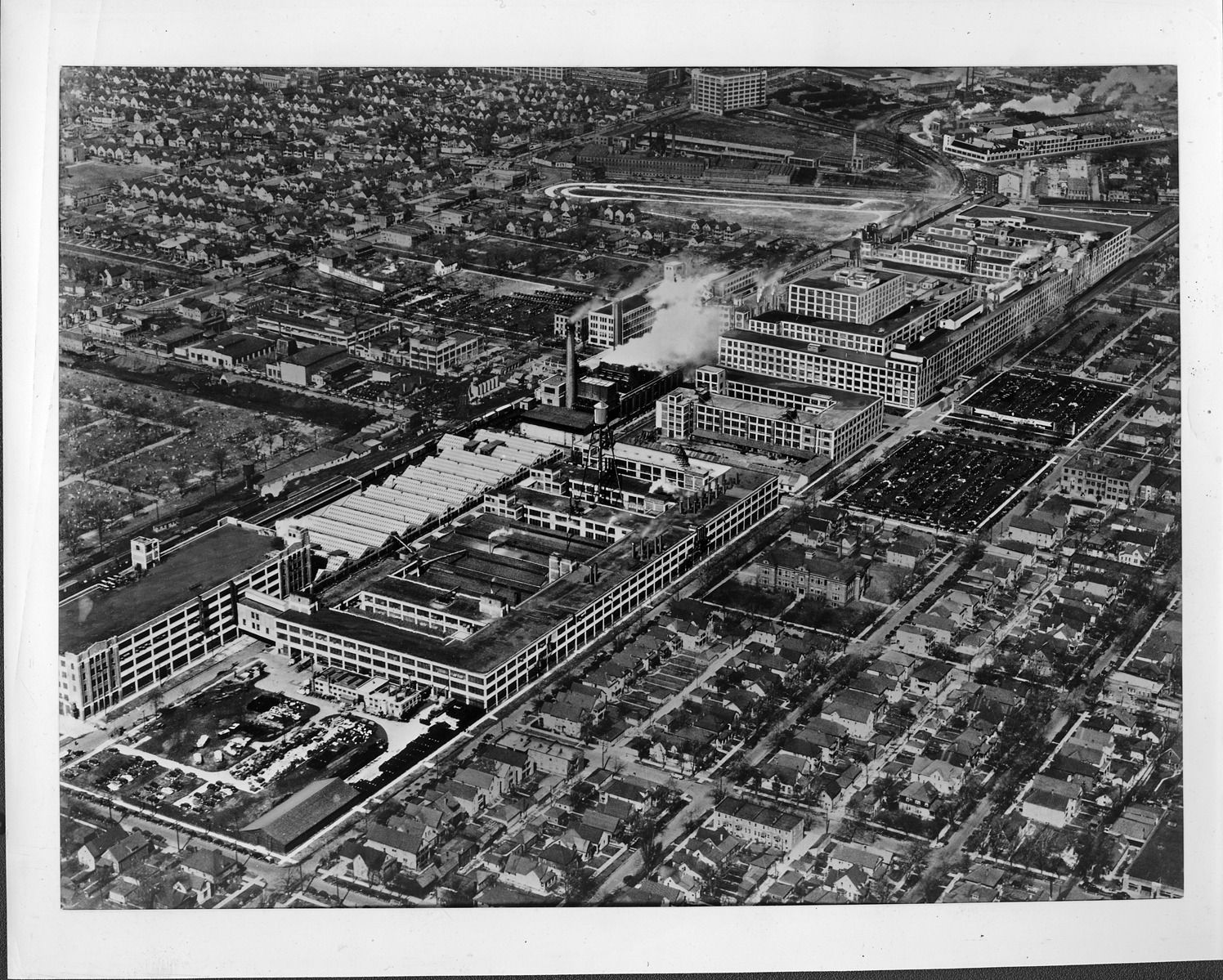 Favorite this☆ Packard factory 1937, aerial view Description: Packard Co. file photograph of 1937 aerial view of Packard factory, several buildings visible, surrounding neighborhood pictured as well. Details Resource ID: EB01e816 Creator: Packard Motor Car Company Subject: Packard automobile Automobile factories--Michigan--Detroit Photographic prints Date Issued: 1937 Format: 1 photographic print ; 8 x 10 in. Member of: National Automotive History Collection Packard Collection Rights: Physical rights are retained by DPL. Copyright is retained in accordance with U.S. copyright laws.