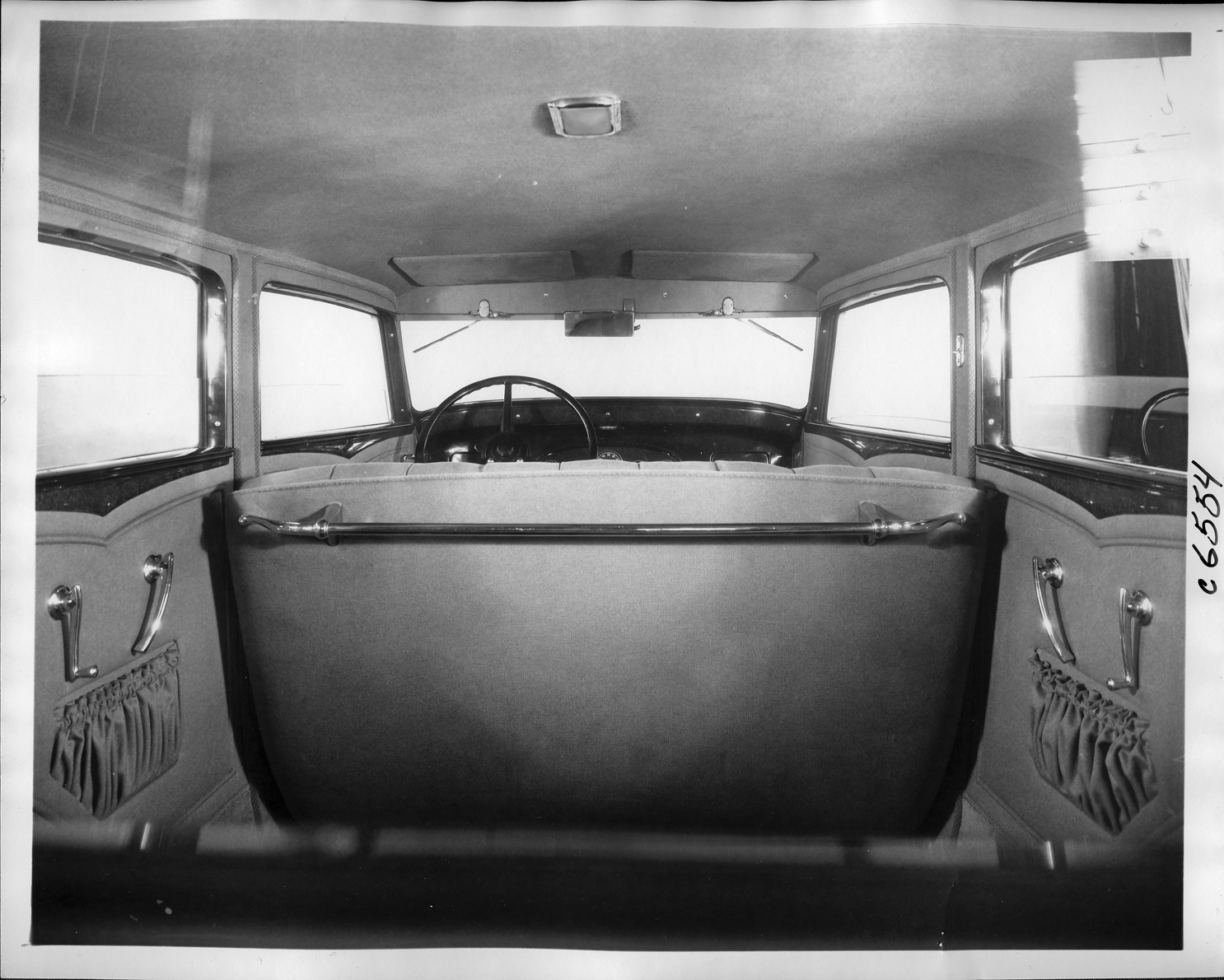 Favorite this☆ 1932 Packard prototype sedan, view interior through rear window Description: Packard Co. file photograph of a 1932 Packard view interior through rear window. Inscribed on photo back: "1932 Packard light eight, ninth series, model 900, 8-cylinder, 110-horsepower, 127.75-inch wheelbase, 5-person sedan (body type #553), prototype (light colored), detail: front seat back." Details Resource ID: EB01e850 Creator: Packard Motor Car Company Subject: Automobiles--Interiors Packard automobile Experimental automobiles Photographic prints Date Issued: 1932 Format: 1 photographic print ; 8 x 10 in. Member of: National Automotive History Collection Packard Collection Rights: Physical rights are retained by DPL. Copyright is retained in accordance with U.S. copyright laws.