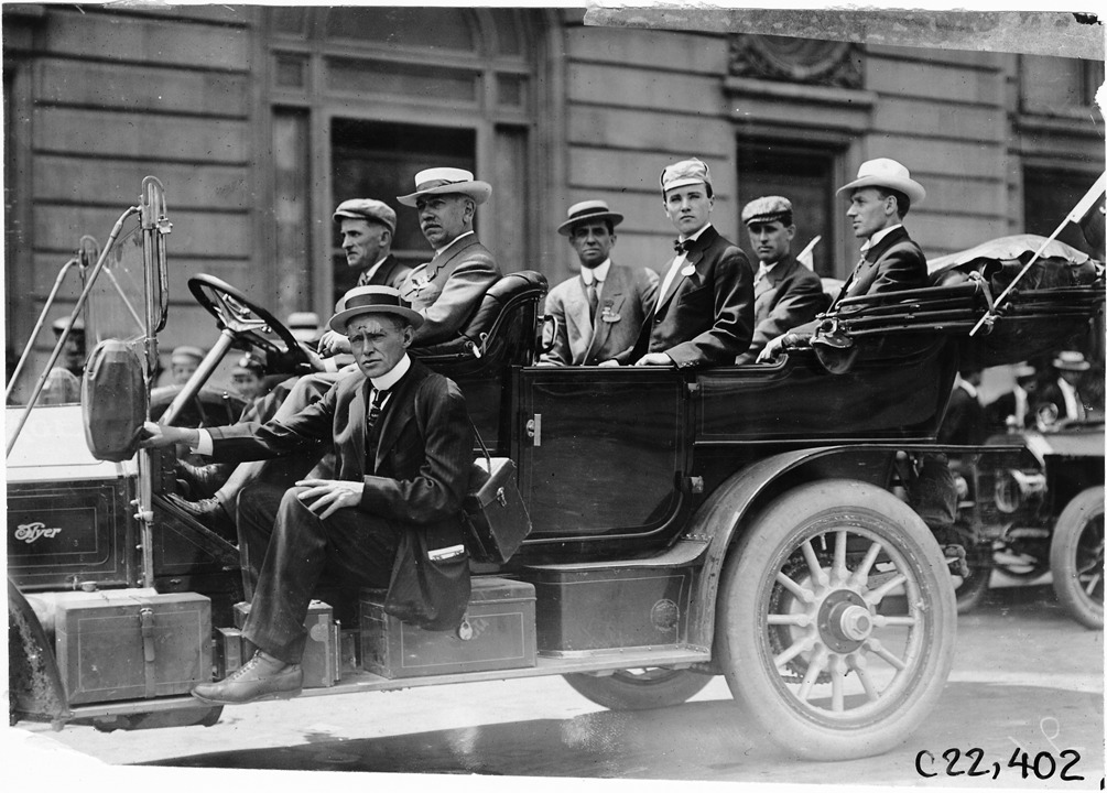 Thomas Flyer car in 1909 Glidden Tour automobile parade, Detroit, Michigan