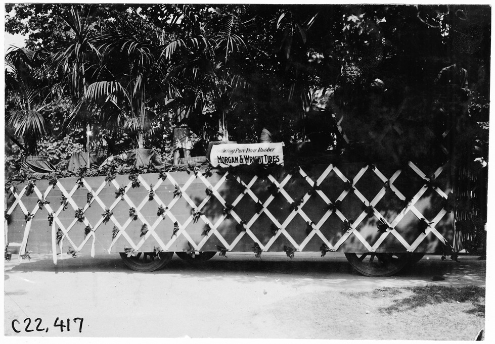 Morgan & Wright float, 1909 Glidden Tour automobile parade, Detroit, Michigan