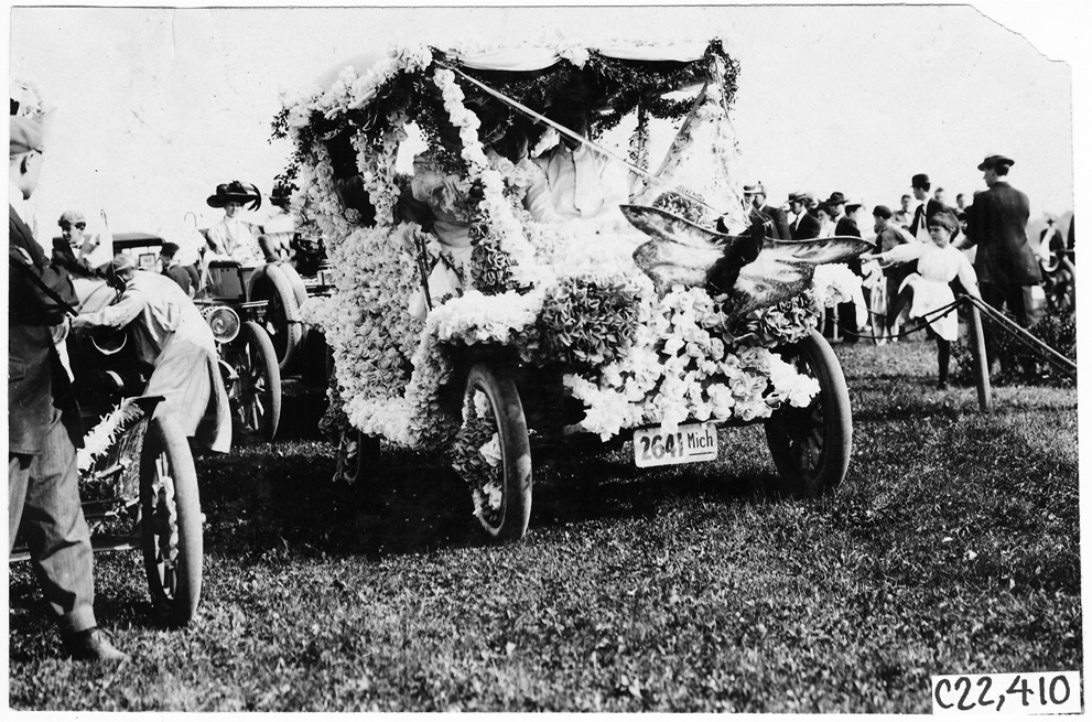 Decorated Buick, 1909 Glidden Tour automobile parade, Detroit, Michigan