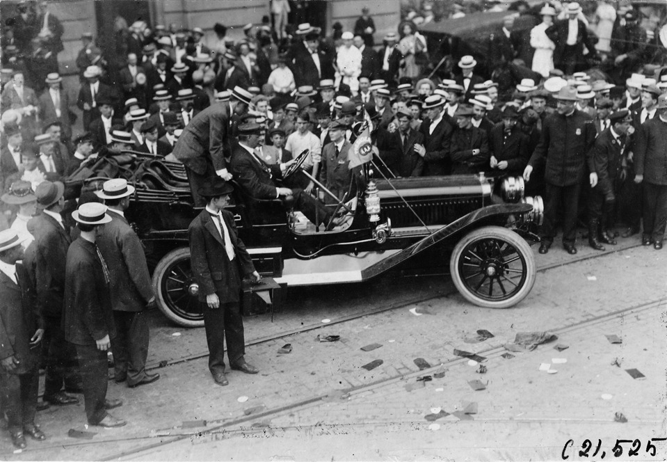 President Speare of AAA in Winton car at start of the 1909 Glidden Tour, Detroit, Michigan