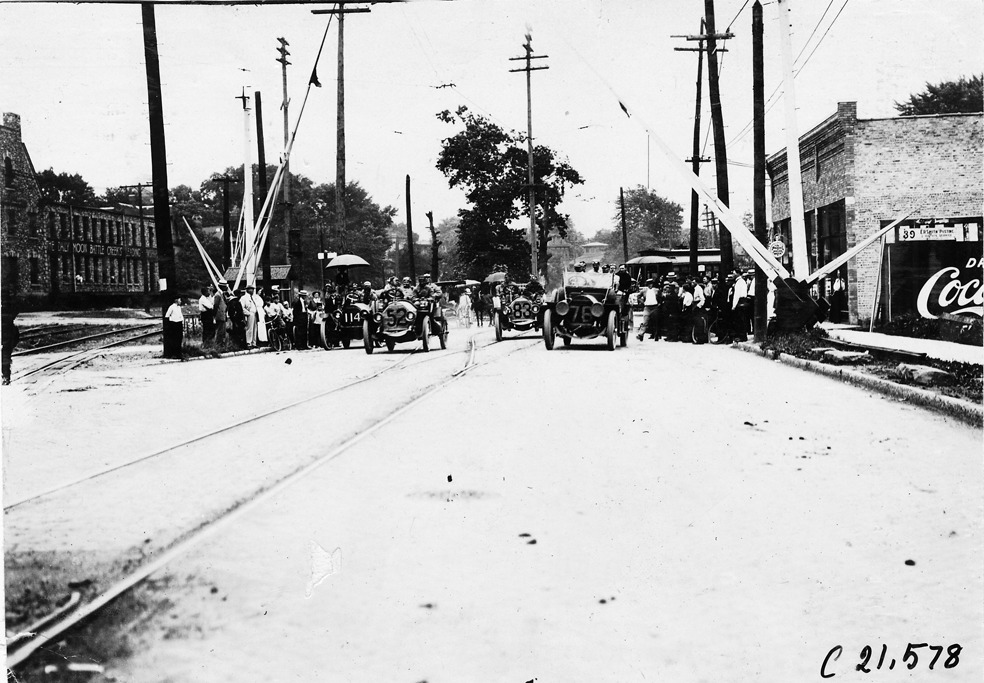 Favorite this☆ Crowd gathers to watch cars in Jackson, Michigan in 1909 Glidden Tour Description: View of several cars surrounded by a small crowd, in Jackson, Michigan, 1909 Glidden Tour. Stamped on back: "Photo by Spooner & Wells, Inc. 1931 Broadway, N.Y." Details Resource ID: EB01f375 Creator: Spooner & Wells Subject: Glidden Tour (1909) Automobile driving--Competitions--United States Streets--Michigan--Jackson Photographers--New York (State)--New York Photographic prints Date Issued: 1909-07 Format: 1 photographic print ; 4.5 x 6.5 in. Member of: National Automotive History Collection Lazarnick Collection Filing Location: Tours--Glidden Tour, 1909 Negative Number: Negative #C21,578 Rights: Physical rights are retained by DPL. Copyright is retained in accordance with U.S. copyright laws.