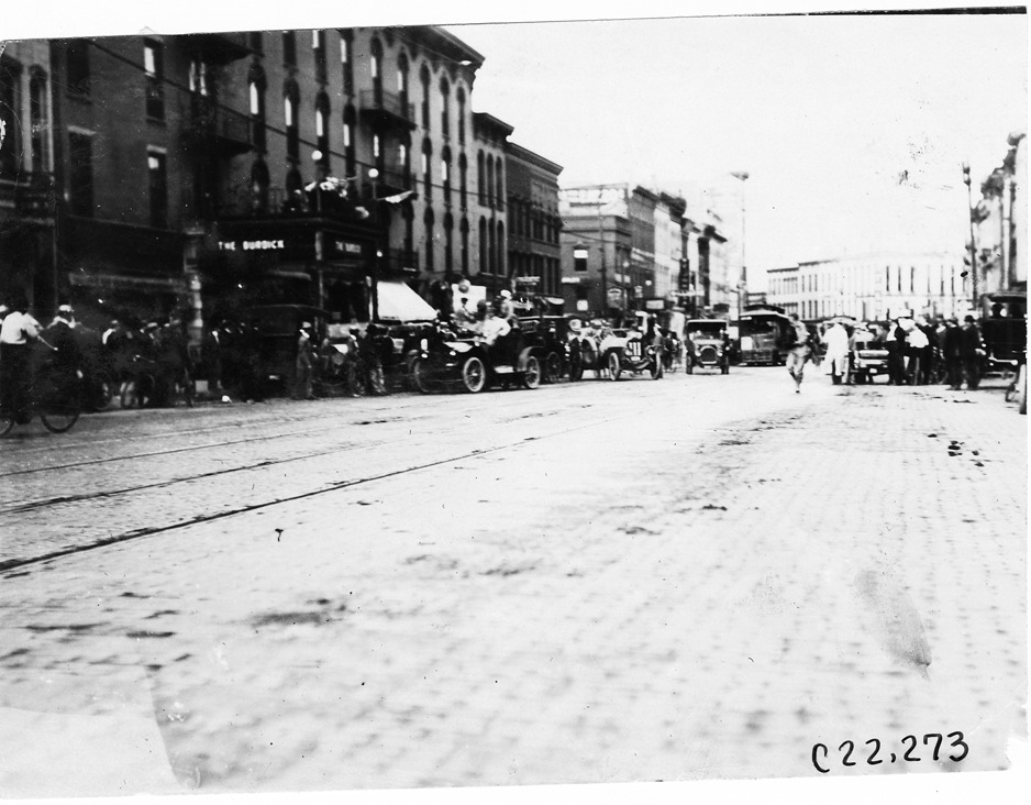 Favorite this☆ Arrival of the Glidden tourists in Kalamazoo, Michigan, 1909 Glidden Tour Description: View of brick-paved street downtown Kalamazoo, Michigan, cars in front of hotel, The Burdick, 1909 Glidden Tour. Photo edges cut unevenly. Details Resource ID: EB01f401 Subject: Glidden Tour (1909) Automobile driving--Competitions--United States Streets--Michigan--Kalamazoo Photographic prints Date Issued: 1909-07 Format: 1 photographic print ; 4.5 x 6.25 in. Member of: National Automotive History Collection Lazarnick Collection Filing Location: Tours--Glidden Tour, 1909 Negative Number: Negative #C22,273 Rights: Physical rights are retained by DPL. Copyright is retained in accordance with U.S. copyright laws.
