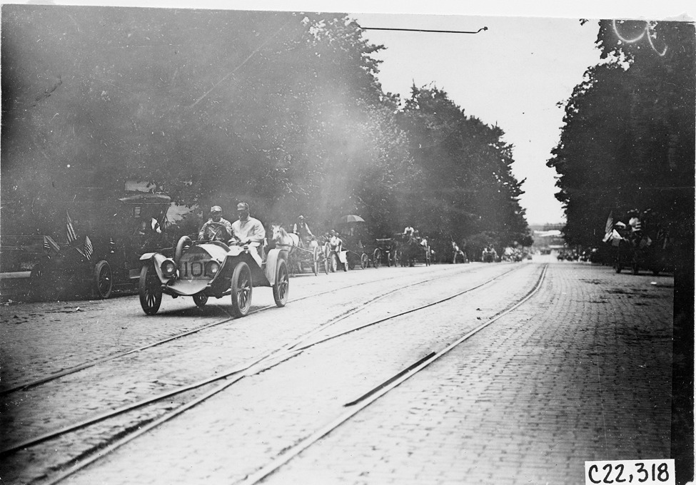 Favorite this☆ Glidden tourists at 1909 Glidden Tour Description: View of "tourist" car on city street with driver and passenger, at 1909 Glidden Tour. Photo edges cut unevenly. Stamped on back: "Spooner & Wells, Inc., photographers, telephones 3472-3473 Columbus, 1931 Broadway, New York." Details Resource ID: EB01f439 Subject: Glidden Tour (1909) Automobile driving--Competitions--United States Brick roads Automobiles Photographic prints Date Issued: 1909-07 Format: 1 photographic print ; 4.5 x 6.5 in. Member of: National Automotive History Collection Lazarnick Collection Filing Location: Tours--Glidden Tour, 1909 Negative Number: Negative #C22,318 Rights: Physical rights are retained by DPL. Copyright is retained in accordance with U.S. copyright laws.