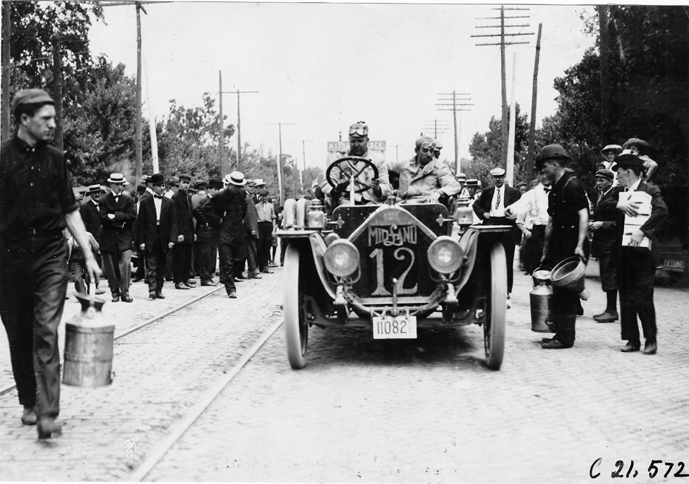 Favorite this☆ Midland car taking supplies in South Bend, Indiana at 1909 Glidden Tour Description: View of Midland #12 taking in supplies, a group of men in background, in South Bend, Indiana, at 1909 Glidden Tour. Photo edges cut unevenly. Details Resource ID: EB01f447 Subject: Glidden Tour (1909) Automobiles Automobile driving--Competitions--United States Automobiles--Indiana--South Bend Midland Motor Company Photographic prints Date Issued: 1909-07 Format: 1 photographic print ; 4.5 x 6.5 in. Member of: National Automotive History Collection Lazarnick Collection Filing Location: Tours--Glidden Tour, 1909 Negative Number: Negative #C21,572 Rights: Physical rights are retained by DPL. Copyright is retained in accordance with U.S. copyright laws.