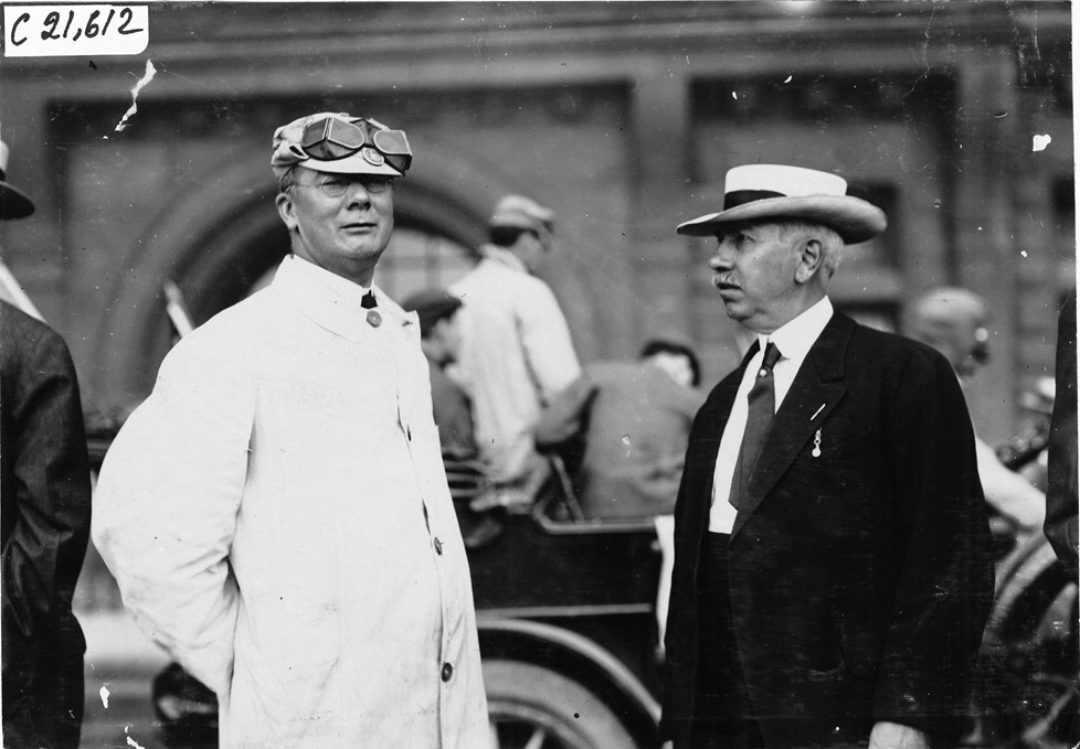 H.M. Swetland and Van Sticklen of the "Automobile Blue Book" in Chicago, Illinois, 1909 Glidden Tour