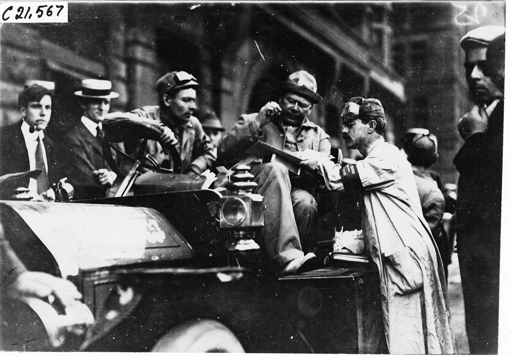 Dai Lewis in the Studebaker press car in Chicago, Illinois, at the 1909 Glidden Tour