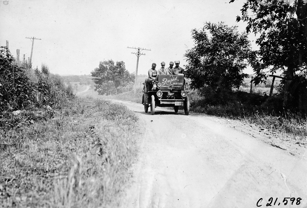 Favorite this☆ Rapid motor car driving at the 1909 Glidden Tour Description: View of the Rapid Motor Vehicle Company car, with driver and three passengers on a dirt road, at the 1909 Glidden Tour. Details Resource ID: EB01f512 Subject: Glidden Tour (1909) Automobile driving--Competitions--United States Rural roads Automobiles Photographic prints Date Issued: 1909-07 Format: 1 photographic print ; 4.5 x 6.5 in. Member of: National Automotive History Collection Lazarnick Collection Filing Location: Tours--Glidden Tour, 1909 Negative Number: Negative #C21,598 Rights: Physical rights are retained by DPL. Copyright is retained in accordance with U.S. copyright laws.