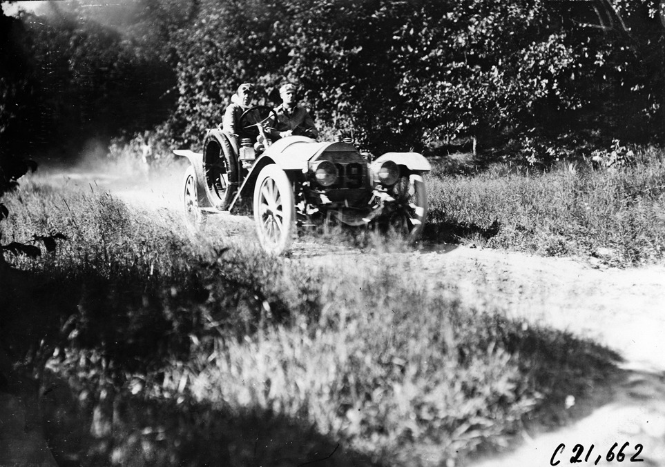 Favorite this☆ Pierce-Arrow car at the 1909 Glidden Tour Description: View of the Pierce-Arrow car #109, driven by Charles Schofield with a passenger, on a dirt road five miles from Madison, Wisconsin, at 1909 Glidden Tour. Details Resource ID: EB01f535 Subject: Glidden Tour (1909) Automobile driving--Competitions--United States Rural roads--Wisconsin Pierce-Arrow automobile Photographic prints Date Issued: 1909-07 Format: 1 photographic print ; 4.5 x 6.5 in. Member of: National Automotive History Collection Lazarnick Collection Filing Location: Tours--Glidden Tour, 1909 Negative Number: Negative #C21,662 Rights: Physical rights are retained by DPL. Copyright is retained in accordance with U.S. copyright laws.