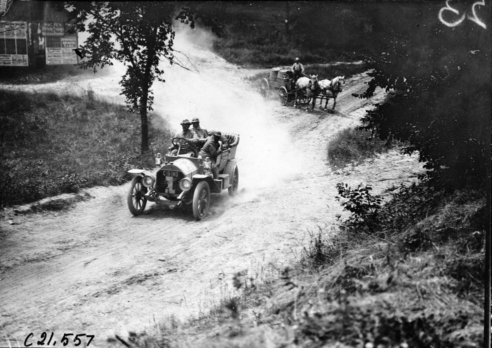 Favorite this☆ Webb Jay in Premier car on the road to Elroy, Wisconsin, 1909 Glidden Tour Description: View of Webb Jay and three passengers in Premier #1, on rural road near Elroy, Wisconsin, man in horse drawn vehicle in background, at the 1909 Glidden Tour. Details Resource ID: EB01f596 Subject: Glidden Tour (1909) Automobile driving--Competitions--United States Automobiles--Wisconsin Premier Motor Manufacturing Company Photographic prints Date Issued: 1909-07 Format: 1 photographic print ; 4.75 x 6.5 in. Member of: National Automotive History Collection Lazarnick Collection Filing Location: Tours--Glidden Tour, 1909 Negative Number: Negative #C21,557 Rights: Physical rights are retained by DPL. Copyright is retained in accordance with U.S. copyright laws.