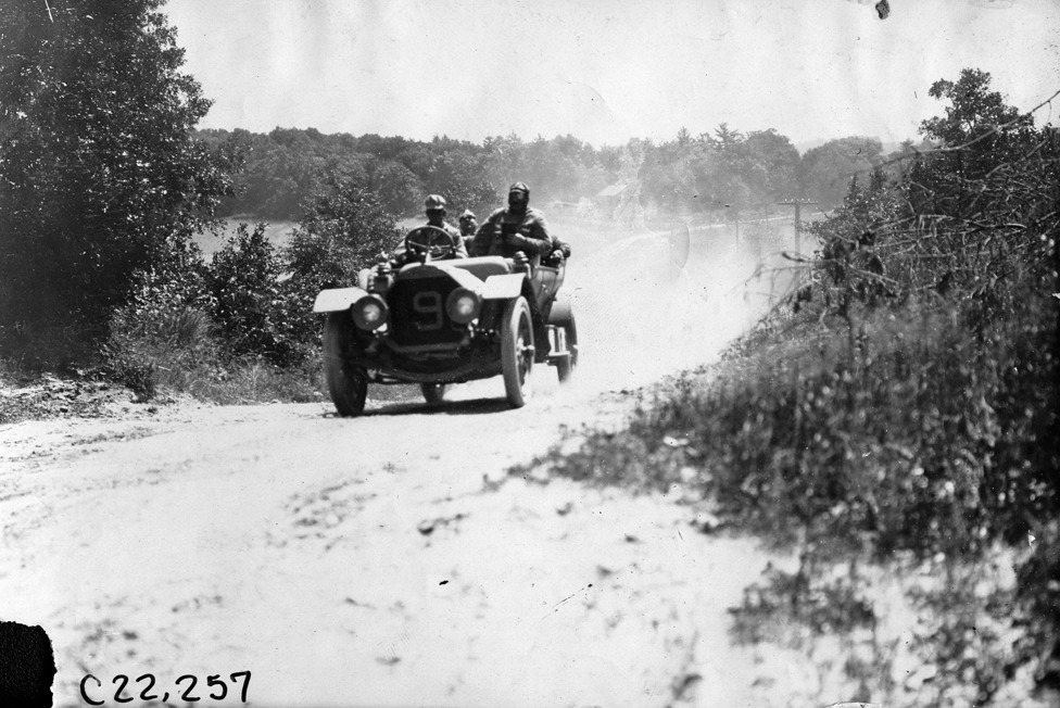Pierce car climbing a hill at the 1909 Glidden Tour