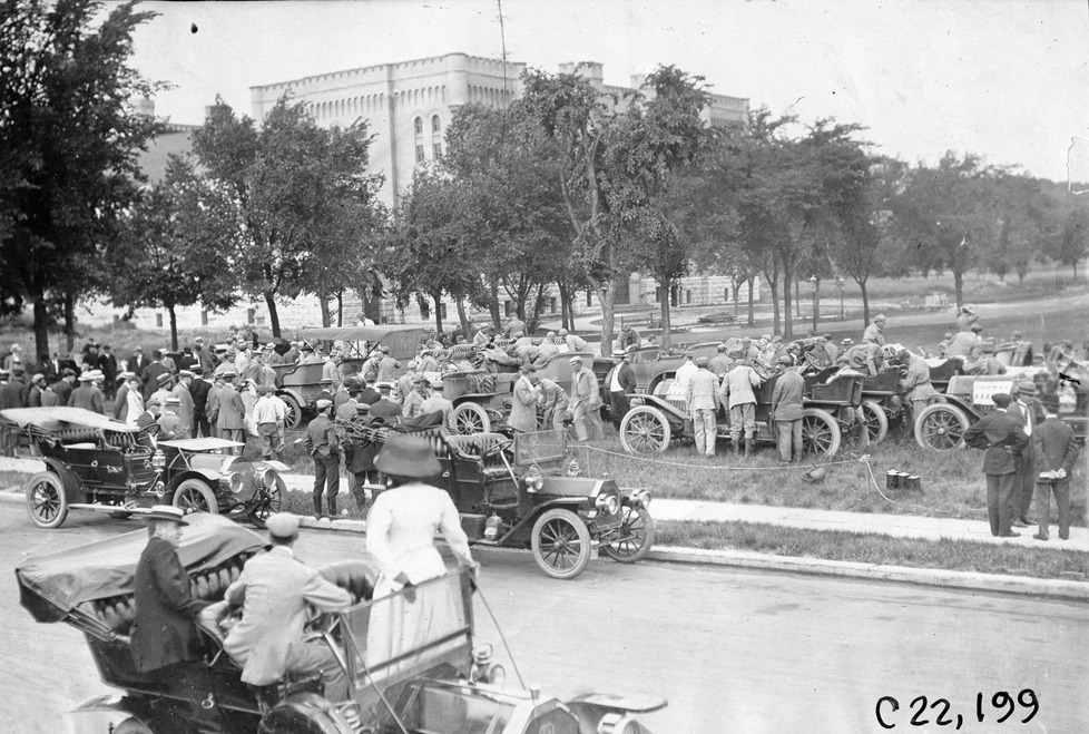 Favorite this☆ Parked at Minneapolis, Minnesota, at the 1909 Glidden Tour Description: View of participants parked on grassy area with a crowd of onlookers, large building in background, in Minneapolis, Minnesota, at the 1909 Glidden Tour. Details Resource ID: EB01f754 Subject: Glidden Tour (1909) Streets--Minnesota--Minneapolis Automobile driving--Competitions--United States Photographic prints Date Issued: 1909-07 Format: 1 photographic print ; 4.5 x 6.5 in. Member of: National Automotive History Collection Lazarnick Collection Filing Location: Tours--Glidden Tour, 1909 Negative Number: Negative #C22,199 Rights: Physical rights are retained by DPL. Copyright is retained in accordance with U.S. copyright laws.