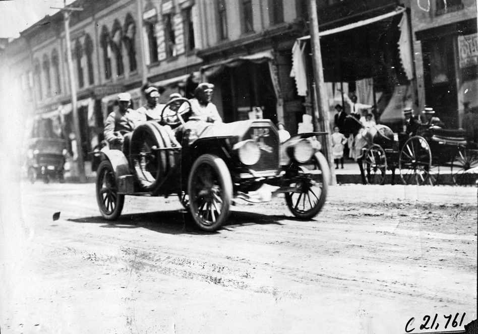 W.S. Gregory in Moline car passing through Faribault, Minnesota, at 1909 Glidden Tour