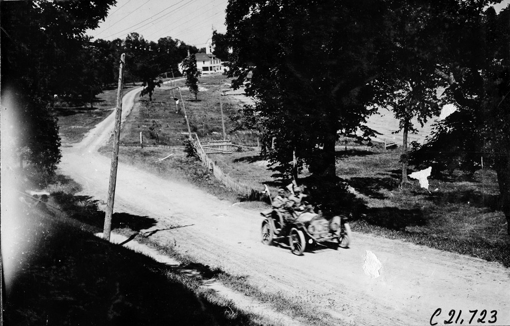 Frank Steinman in Hupmobile car nearing Mankato, Minnesota, at 1909 Glidden Tour