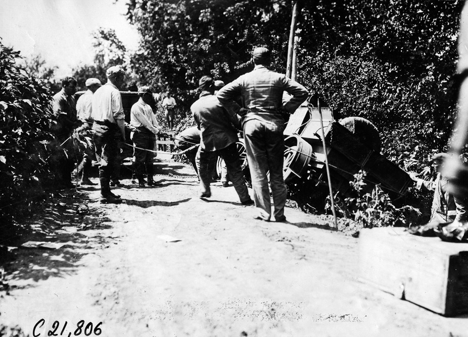 Rapid truck in ditch near Algona, Iowa, at the 1909 Glidden Tour