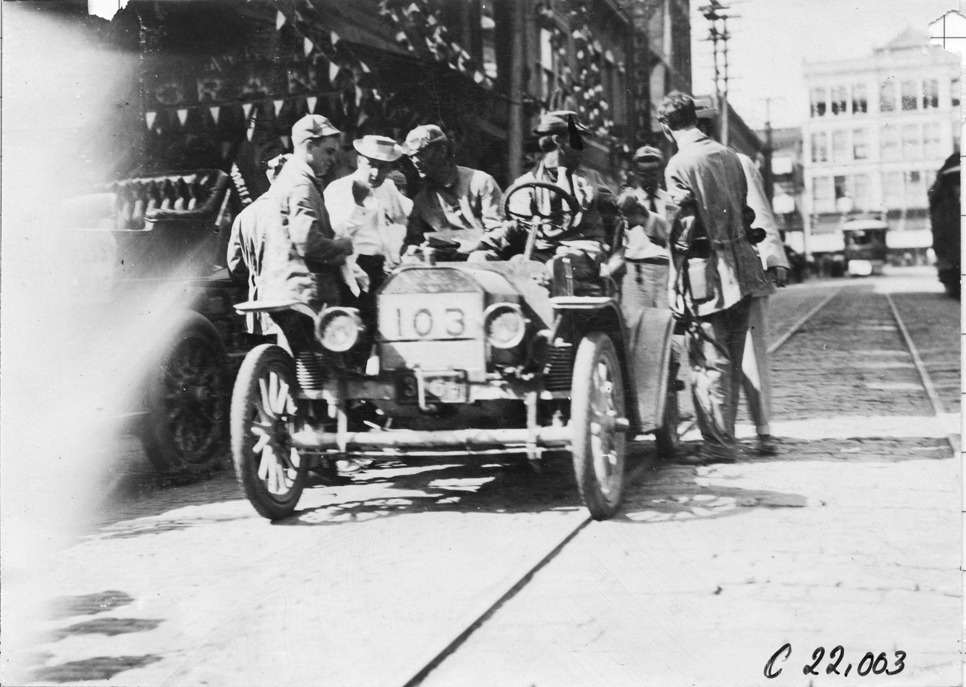 Favorite this☆ Brush runabout car checking in at Council Bluffs, Iowa at 1909 Glidden Tour Description: View of Brush runabout #103 checking in at Council Bluffs, Iowa at the 1909 Glidden Tour. Stamped on back: "Photo by Spooner & Wells, Inc. 1931 Broadway, N.Y." Details Resource ID: EB01f982 Creator: Spooner & Wells Subject: Glidden Tour (1909) Automobile driving--Competitions--United States Automobiles--Iowa--Council Bluffs Brush Runabout Company Photographers--New York (State)--New York Photographic prints Date Issued: 1909-07 Format: 1 photographic print ; 4.5 x 6.5 in. Member of: National Automotive History Collection Lazarnick Collection Filing Location: Tours--Glidden Tour, 1909 Negative Number: Negative #C22,003 Rights: Physical rights are retained by DPL. Copyright is retained in accordance with U.S. copyright laws.