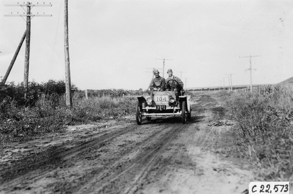 Favorite this☆ Brush car #104 passing through Chapman, Nebraska, at the 1909 Glidden Tour Description: View of Brush car #104, driver and passenger on a dirt-paved road passing through Chapman, Nebraska, at the 1909 Glidden Tour. Details Resource ID: EB01g005 Subject: Glidden Tour (1909) Rural roads--Nebraska Automobile driving--Competitions--United States Automobiles--Nebraska Brush Runabout Company Photographic prints Date Issued: 1909-07 Format: 1 photographic print ; 4.5 x 6.5 in. Member of: National Automotive History Collection Lazarnick Collection Filing Location: Tours--Glidden Tour, 1909 Negative Number: Negative #C22,573 Rights: Physical rights are retained by DPL. Copyright is retained in accordance with U.S. copyright laws.
