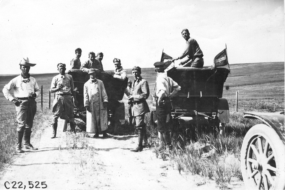 Glidden cars stopped on road in Colorado, at the 1909 Glidden Tour