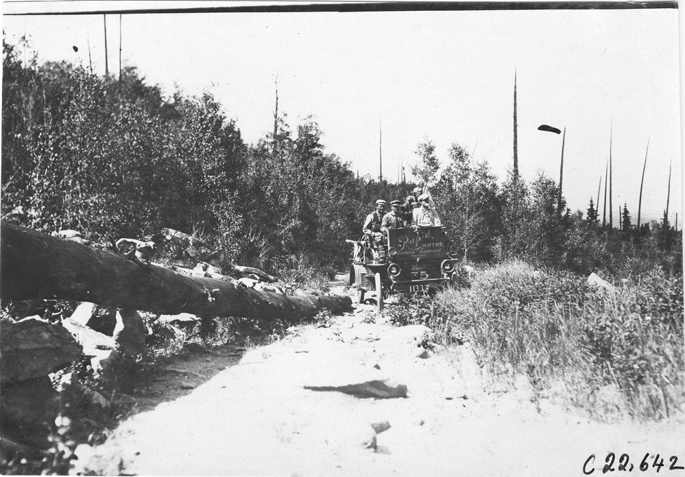 Favorite this☆ Rapid motor truck on mountain road in Colorado, at 1909 Glidden Tour Description: View of Rapid motor truck with driver and three passengers on mountain road near fallen tree in Colorado, at the 1909 Glidden Tour. Photo edges cut unevenly. Details Resource ID: EB01g313 Subject: Glidden Tour (1909) Mountain roads--Colorado Automobile driving--Competitions--United States Trucks--Colorado Photographic prints Date Issued: 1909-07 Format: 1 photographic print ; 4.5 x 6.5 in. Member of: National Automotive History Collection Lazarnick Collection Filing Location: Tours--Glidden Tour, 1909 Negative Number: Negative #C22,642 Rights: Physical rights are retained by DPL. Copyright is retained in accordance with U.S. copyright laws.