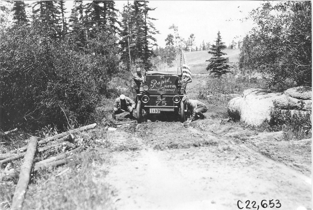 Rapid motor truck on mountain road in Colorado, at 1909 Glidden Tour