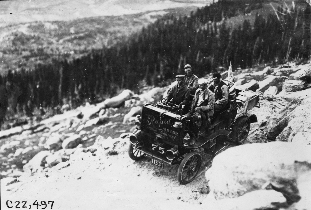 Favorite this☆ Rapid motor truck heads back down mountain in Colorado, at 1909 Glidden Tour Description: View of Rapid motor truck with driver and three passengers heading back down the mountain in Colorado, at the 1909 Glidden Tour. Details Resource ID: EB01g340 Subject: Glidden Tour (1909) Mountain roads--Colorado Automobile driving--Competitions--United States Trucks--Colorado Photographic prints Date Issued: 1909-07 Format: 1 photographic print ; 4.5 x 6.5 in. Member of: National Automotive History Collection Lazarnick Collection Filing Location: Tours--Glidden Tour, 1909 Negative Number: Negative #C22,497 Rights: Physical rights are retained by DPL. Copyright is retained in accordance with U.S. copyright laws.