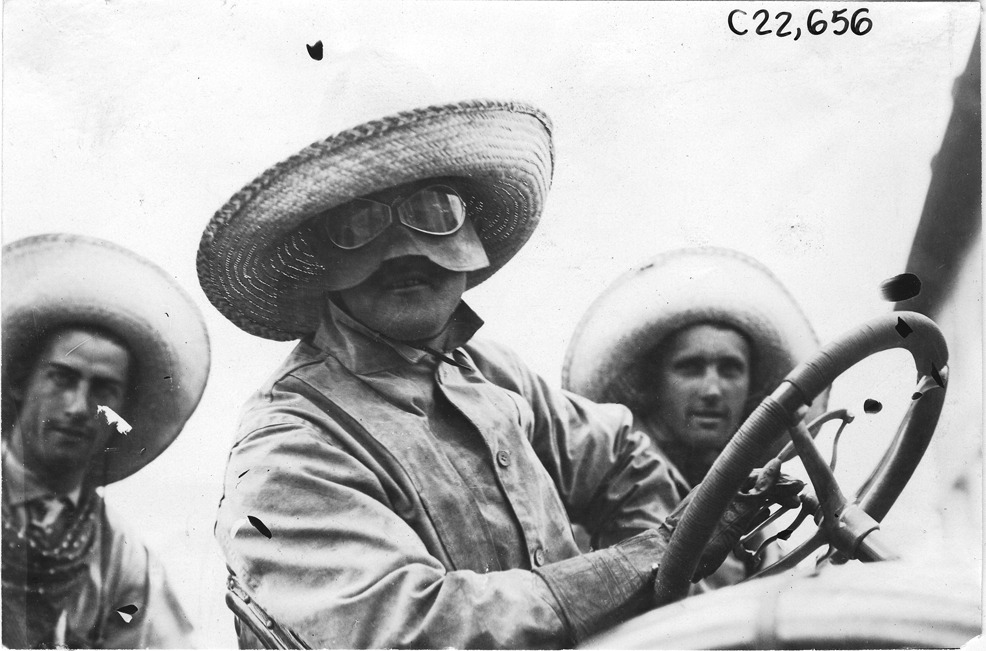 Favorite this☆ Driver with sombrero in Colorado Springs, Colorado, at the 1909 Glidden Tour Description: View of driver wearing a mask with goggles and straw sun hat, two passengers also wearing sun hats, in Colorado Springs, Colorado, at the 1909 Glidden Tour. Details Resource ID: EB01g432 Subject: Glidden Tour (1909) Automobile drivers--Colorado--Colorado Springs Automobile driving--Competitions--United States Photographic prints Date Issued: 1909-07 Format: 1 photographic print ; 4.25 x 6.5 in. Member of: National Automotive History Collection Lazarnick Collection Filing Location: Tours--Glidden Tour, 1909 Negative Number: Negative #C22,656 Rights: Physical rights are retained by DPL. Copyright is retained in accordance with U.S. copyright laws.