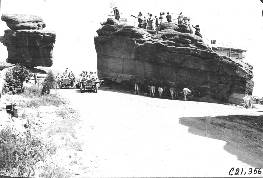 Chalmers cars at Balanced Rock in the Garden of the Gods, Colorado, at the 1909 Glidden Tour