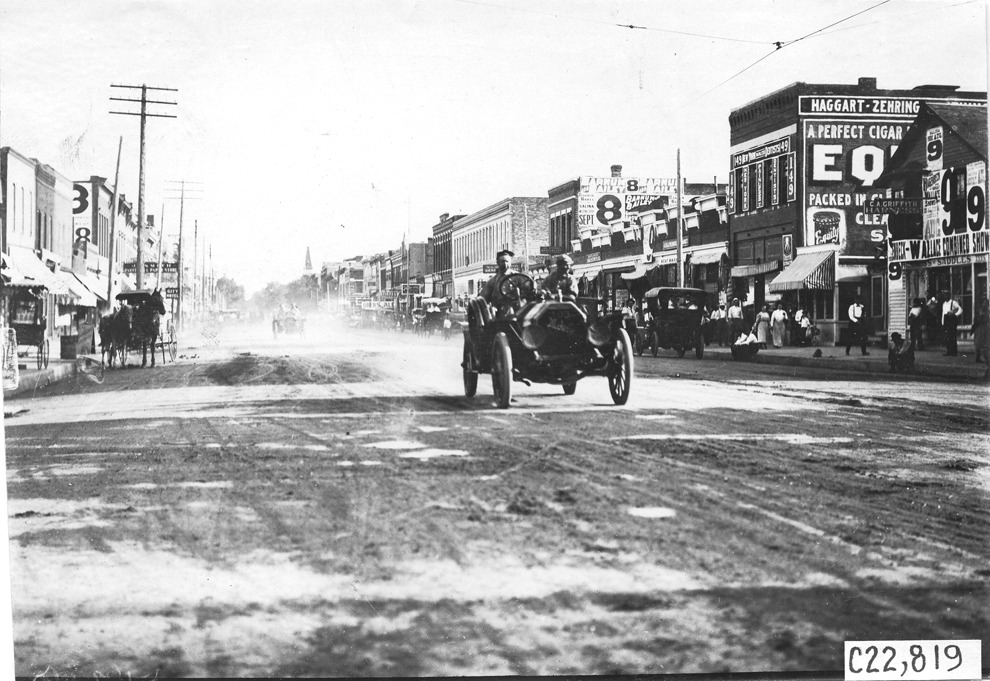Moline car #100 arriving in Hugo, Colorado, at the 1909 Glidden Tour