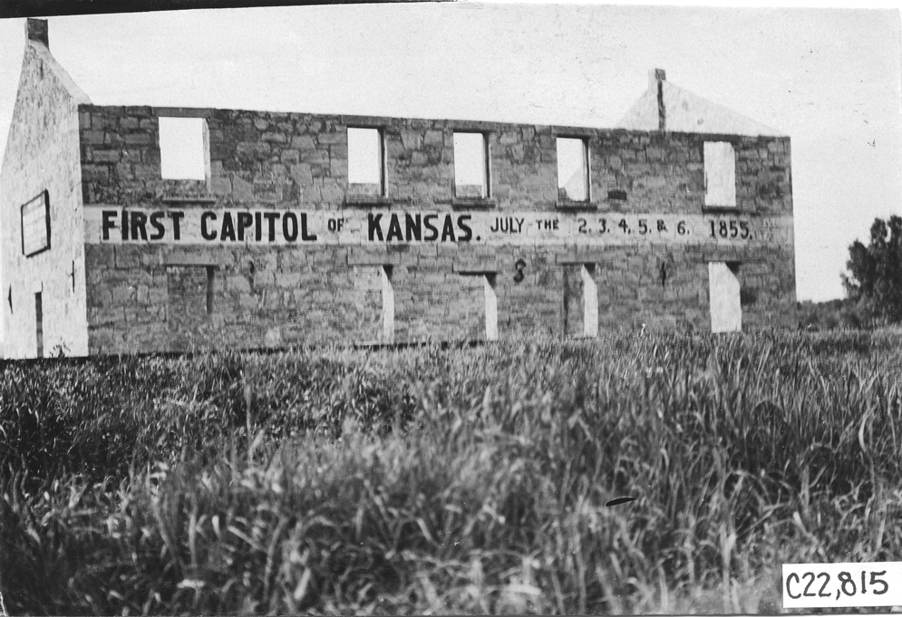 Favorite this☆ Building labeled "First Capitol of Kansas" near Fort Riley, Kansas, at 1909 Glidden Tour Description: View of building labeled "First Capitol of Kansas" near Fort Riley, Kansas, at the 1909 Glidden Tour. Photo edges cut unevenly. Details Resource ID: EB01g586 Subject: Glidden Tour (1909) Public buildings--Kansas--Fort Riley Automobile driving--Competitions--United States Photographic prints Date Issued: 1909-07 Format: 1 photographic print ; 4.5 x 6.5 in. Member of: National Automotive History Collection Lazarnick Collection Filing Location: Tours--Glidden Tour, 1909 Negative Number: Negative #C22,815 Rights: Physical rights are retained by DPL. Copyright is retained in accordance with U.S. copyright laws.